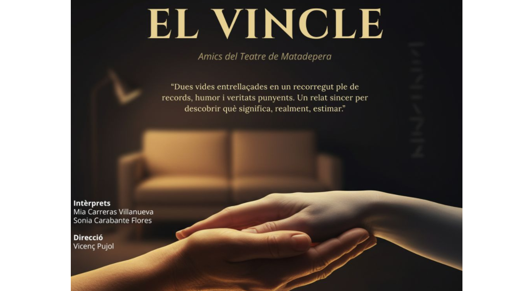 En la tercera edició de la campanya “Cap butaca buida”, els Amics del Teatre de Matadepera presenten els dies 21 i 22 de març (18.00h, Casal de Cultura) l’obra “El vincle”, que, dirigida per Vicenç Pujol serà interpretada per Mia Carreras Villanueva i Sònia Carabante Flores. Les entrades (6 €) es poden adquirir al web www.entrapolis, l’enllaç del qual trobareu en aquesta mateixa pàgina.