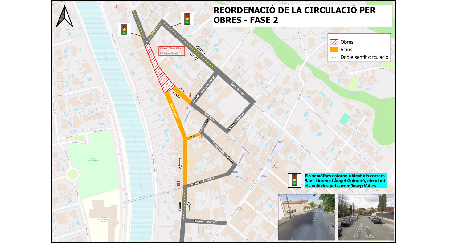 Segons ha informat el consistori, aquesta nova fase implica restriccions de trànsit i modificacions en la circulació que afectaran diversos carrers de l’entorn. Entre les principals mesures, destaca el tall total de la circulació al carrer d’Antoni Gaudí i al carrer de Sant Llorenç en el tram comprès aproximadament entre els carrers de Josep Valls i de Sant Isidre. En aquest punt, només es permetrà l’accés als veïns per entrar als aparcaments de les seves propietats privades. També es manté el tall vigent al carrer Sant Joan.