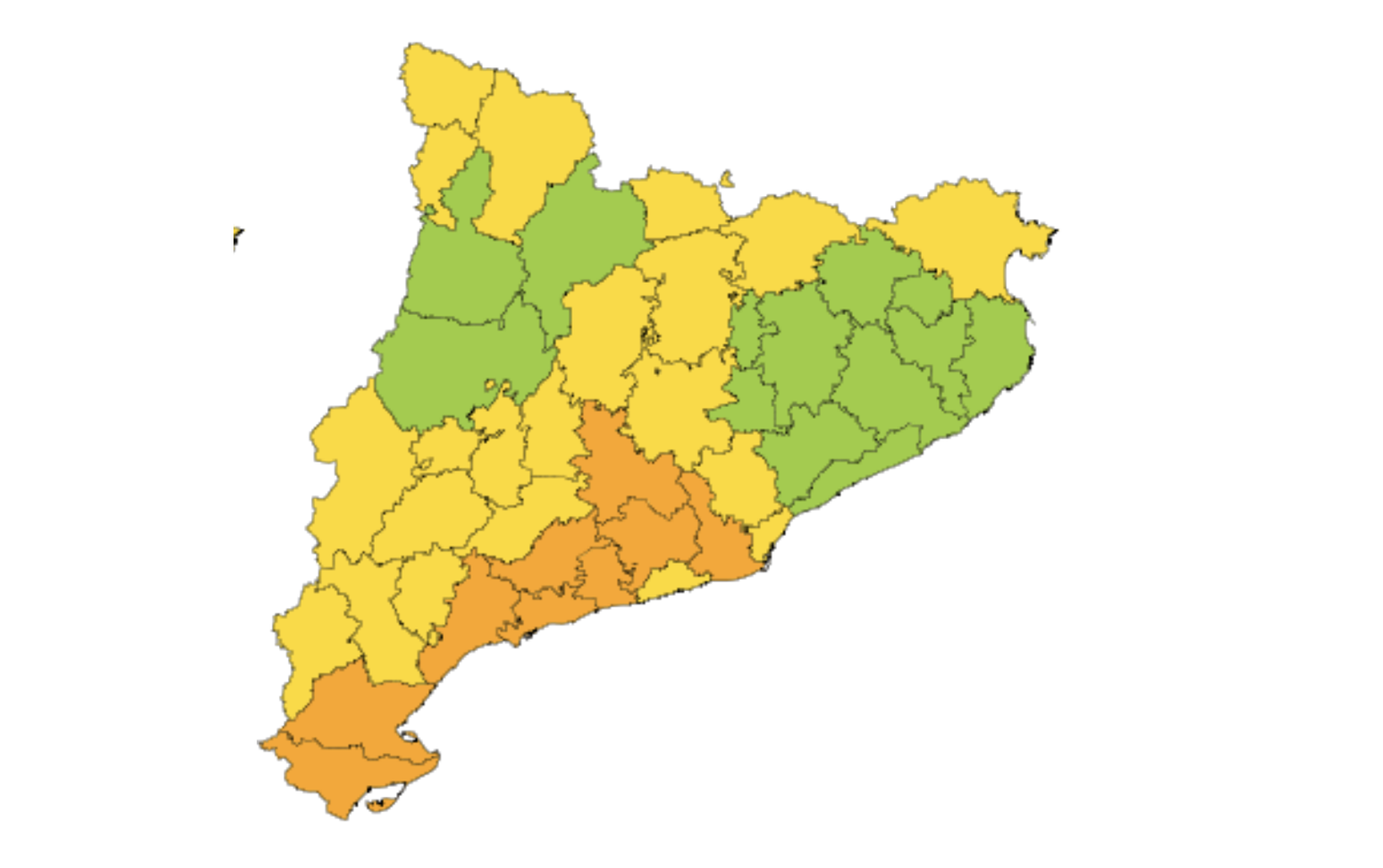 A part d'algunes comarques del Pirineu, s'han afegit a l'avís comarques de les demarcacions de Lleida i Terres de l'Ebre, així com el Berguedà i el Solsonès. La ventada serà extensa. Recordem que al territori avisat es poden produir ratxes màximes de vent superiors als 20 m/s. El vent bufarà de component oest.