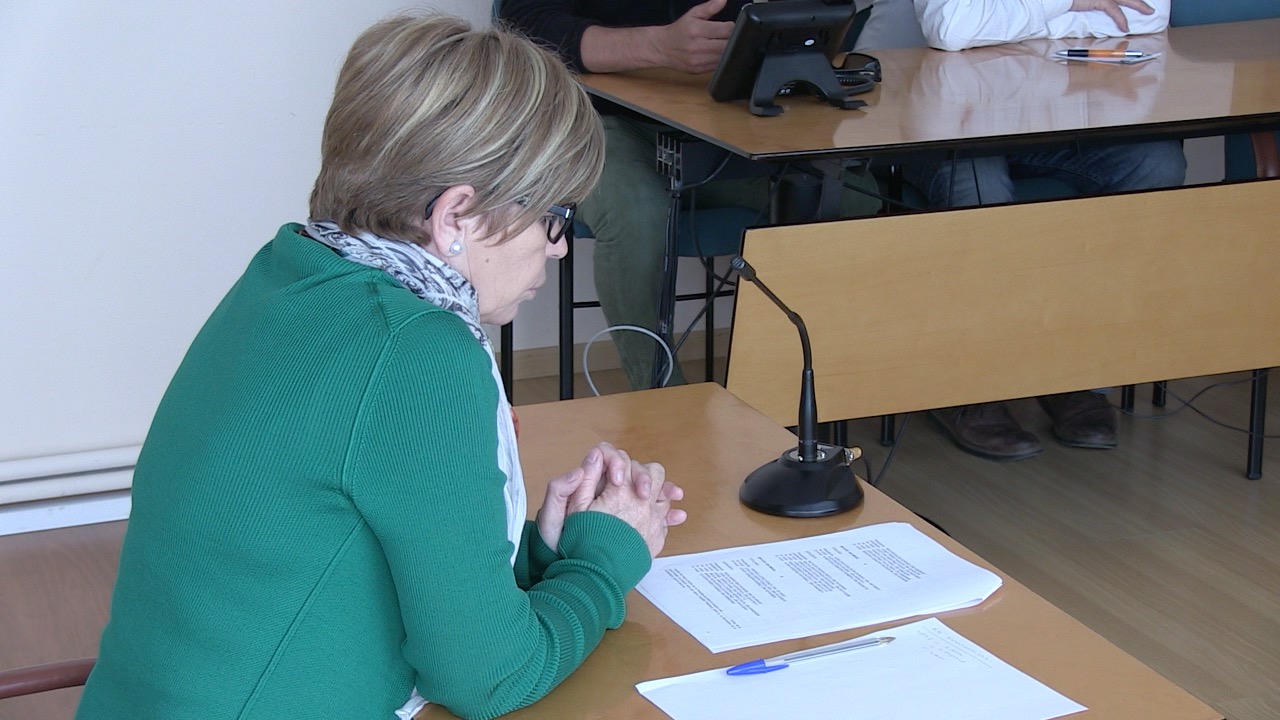 A la dreta, dues imatges del ple d'aquest matí: la secretària de l'Ajuntament, Rosa Castellà, en el moment de llegir els integrants de les meses electorals del 24 de maig, i a sota, una imatge més general del ple. (Fotos: Matadepera TV).