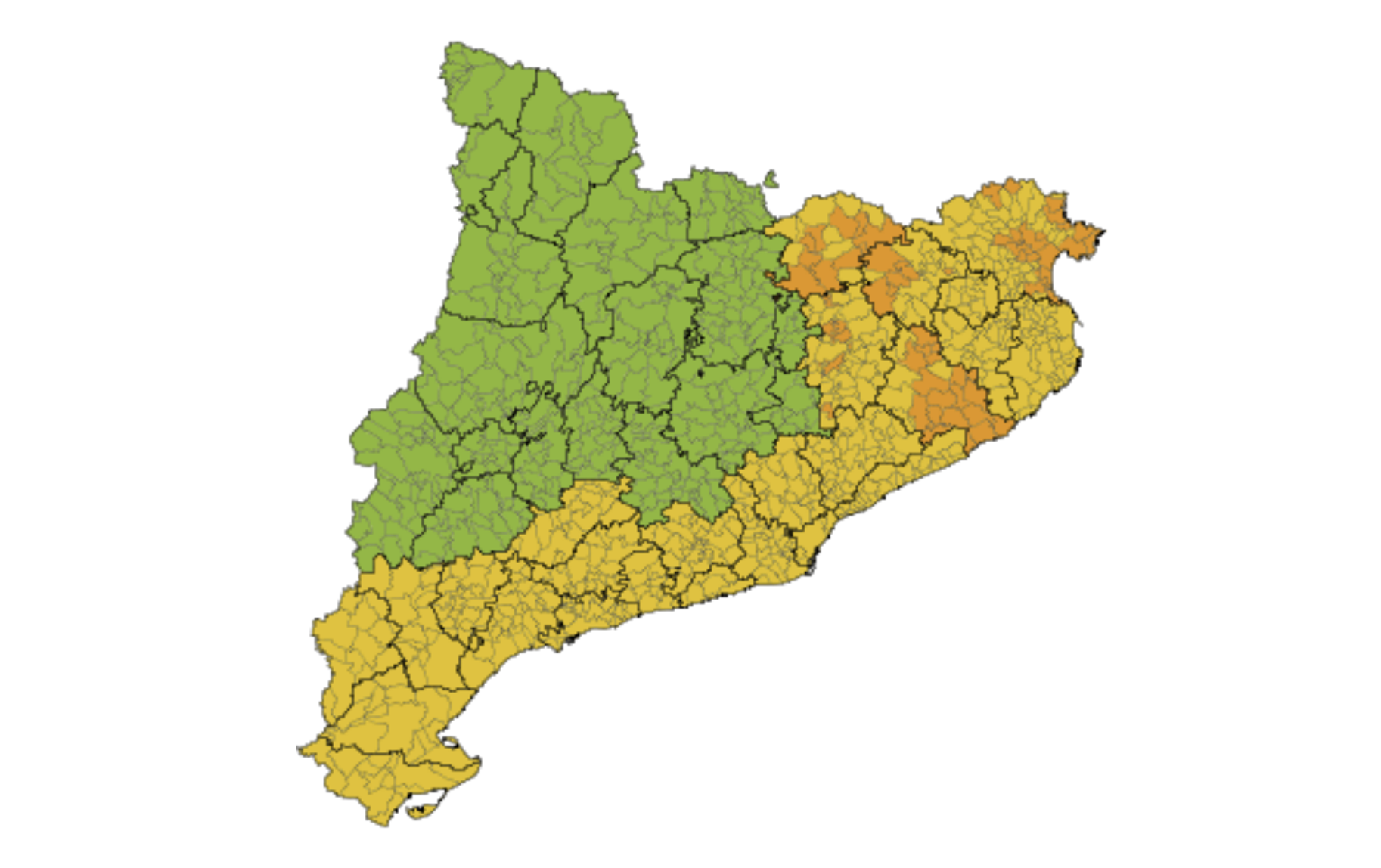 El Servei Meteorològic de Catalunya ha actualitzat la previsió meteorològica i els canvis més destacats són el grau de perill per l'acumulació de pluja en algunes comarques. Així, per aquest dissabte s’espera, amb probabilitat baixa, un fenomen d’intensitat de pluja que pot superar els 20 mm en 30 minuts a comarques del prelitoral i litoral, i localment és possible que els xàfecs vagin acompanyats de tempesta.