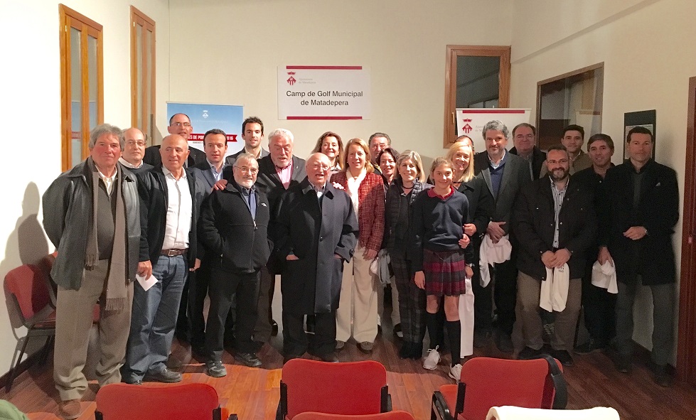 El Camp de Golf Municipal de Matadepera va acollir aquest passat 22 de febrer l’acte de presentació de les activitats per aquest 2016, al mateix temps que es va fer balanç de l’alta participació que hi ha hagut als dos primers campionats de l’any, el de Sant Sebastià i Carnestoltes, i en general, de tot l’any passat, amb un increment de més d’un 25% respecte l’any 2014. L’acte va estar presidit per l’alcaldessa Mireia Solsona, el regidor d’esports Quico Sala i el president del Club de Golf Matadepera Carles Iribarren. D’entre les novetats per aquest 2016, un nou calendari de jornades de portes obertes, donada la bona experiència de l’any passat: enguany seran 9 diumenges a la tarda entre febrer i novembre en que el camp organitzarà una classe col·lectiva per iniciar-se al golf, i que estarà obert per sortir a jugar per a aquells jugadors que ja disposen de llicència. D’altra banda, també hi haurà noves facilitats per obtenir el handicap: des de l’any passat, es manté l’oferta per fer el curs de Handicap des de 100€ amb un grup de mínim 3 persones. I la Federació Catalana de Golf ha autoritzat a l’entitat a fer l’examen teòric per a l’obtenció del handicap al camp de golf mateix, sense haver de fer el desplaçament a Barcelona. I tot això mantenint l’escola de golf, dirigida tant a infants com a adults per iniciar-se en l’esport i millorar-lo. A l’acte també es va fer reconeixement als jugadors que més vegades han participat als campionats que van tenir lloc l’any passat, els anomenats MVP’s (Matadepera Valuable Players), que han estat Josep Prats Mañosa, Josep Riba Cabana, Javier Yague Garreta, Lluis Yague Garreta, Luigina de Gasperi Lorenzet, Xavier Martí Artemí, Elena Moix Vidal, Jose Olive Davi, Blanca Yague Cuadros, Joan Cortada Rius, Urmila Cortada Garcia, David Estany Sanz, Carles Iribarren Donadeu i Joaquin Marty Capel. A la dreta, foto de família dels assistents i un moment de la presentació de la nova temporada. (Fotos: Camp de Golf).