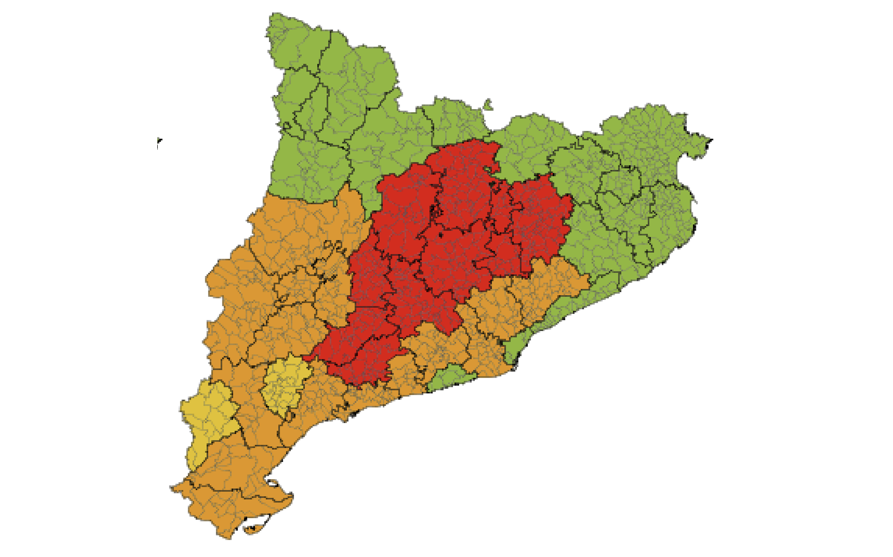 A la imatge, mapa del previst a Catalunya aquest dilluns al matí.